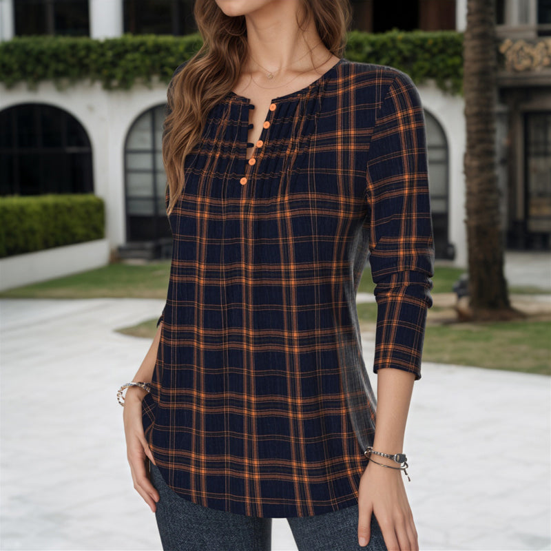 【Long Sleeve】Vintage Plaid Blouse